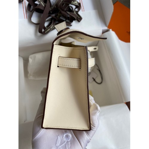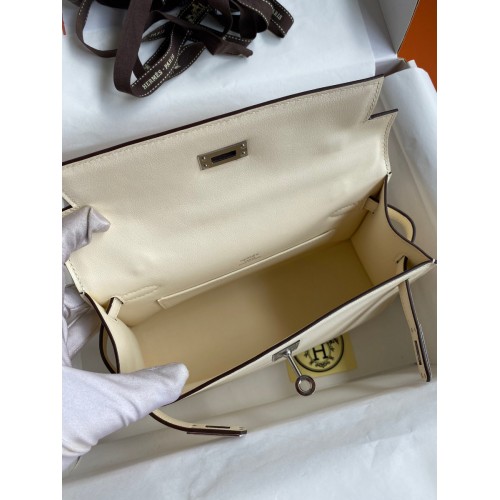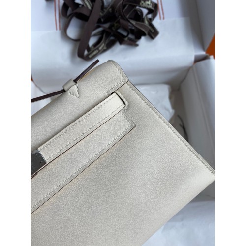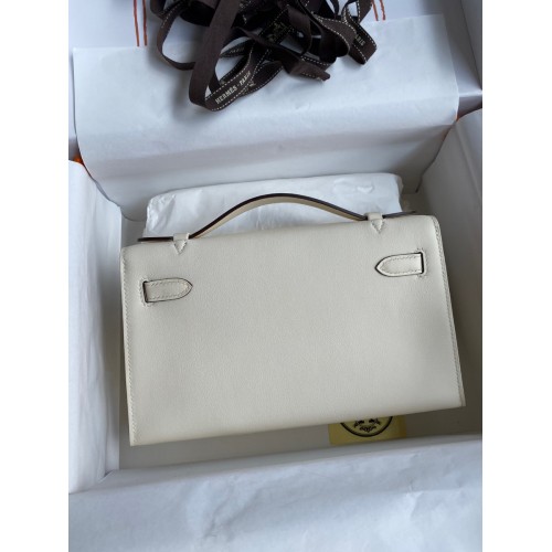 Hermes Kelly Pochette Handmade Bag In Nata Swift Calfskin