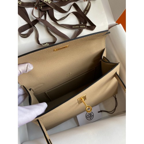 Hermes Kelly Pochette Handmade Bag In Trench Epsom Calfskin