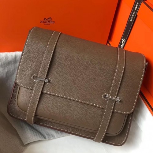Hermes Steve 35 Messenger Bag In Taupe Clemence Calfskin