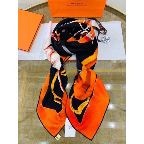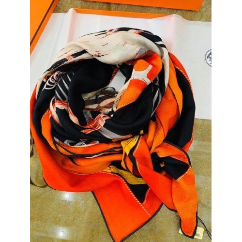 Hermes Orange Projets Carres Shawl 140