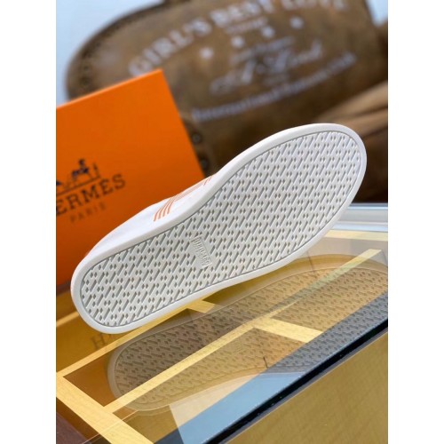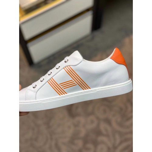 Hermes Men's Avantage Sneakers In White/Orange Calfskin