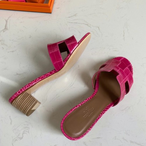 Hermes Oasis Sandals In Rose Red Shiny Niloticus Crocodile