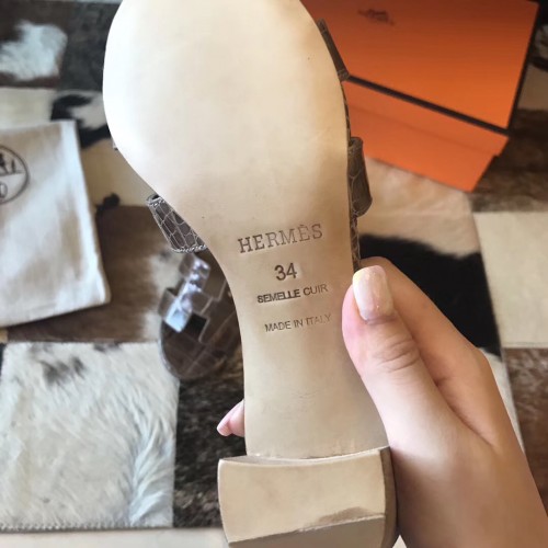 Hermes Oasis Sandals In Taupe Shiny Niloticus Crocodile