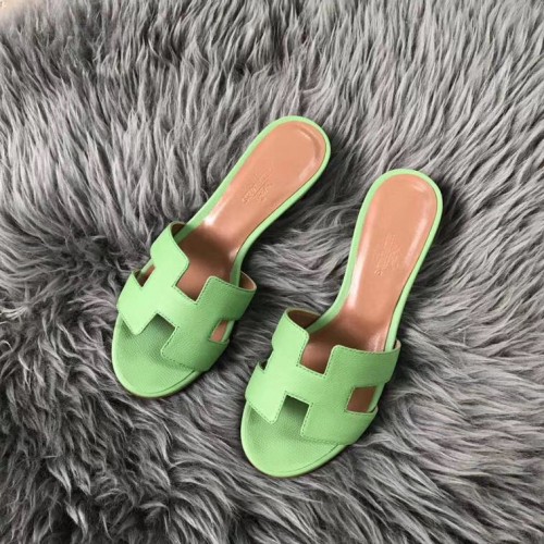 Hermes Oasis Sandals In Vert Criquet Epsom Leather
