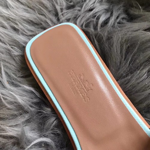 Hermes Oran Perforated Sandals In Blue Atoll Epsom Leather