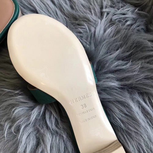 Hermes Oran Perforated Sandals In Malachite Epsom Leather