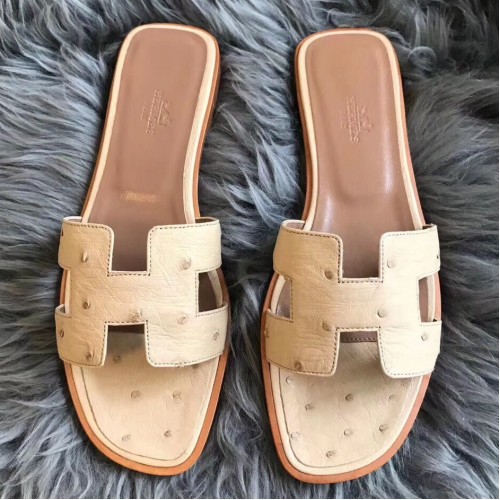 Hermes Oran Sandals In Beige Ostrich Leather