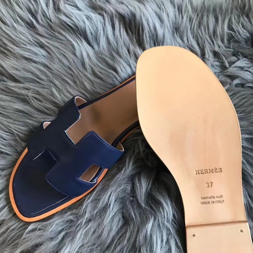 Hermes Oran Sandals In Navy Swift Leather