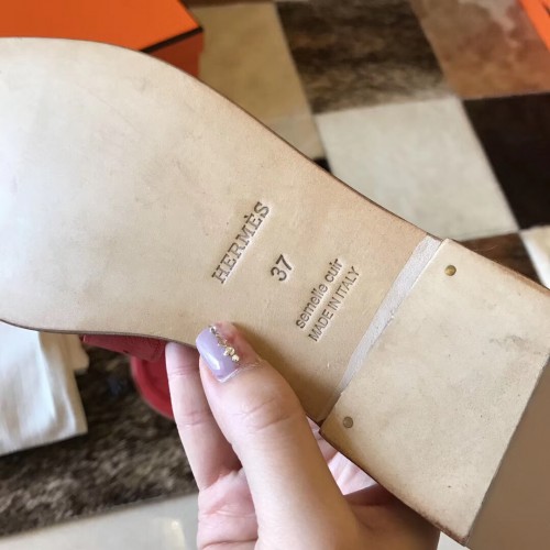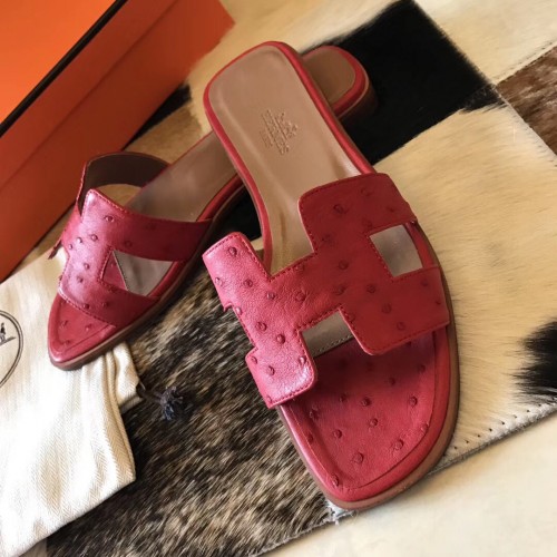 Hermes Oran Sandals In Red Ostrich Leather