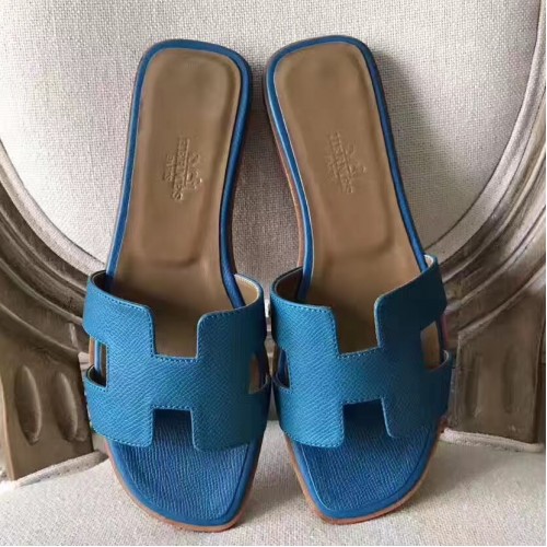 Hermes Oran Sandals In Turquoise Epsom Leather