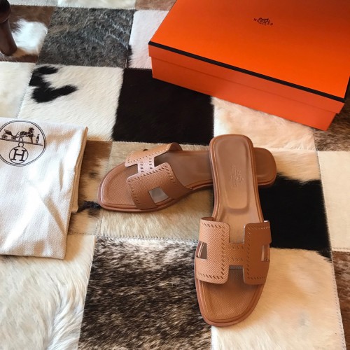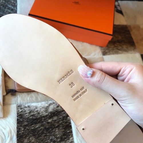 Hermes Oran Slide Sandals In Gold Epsom Perforated Calfskin