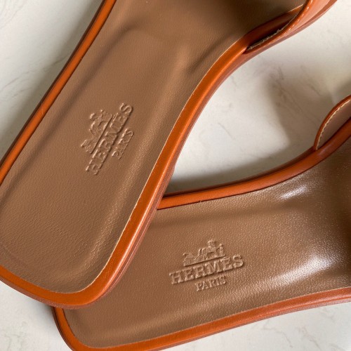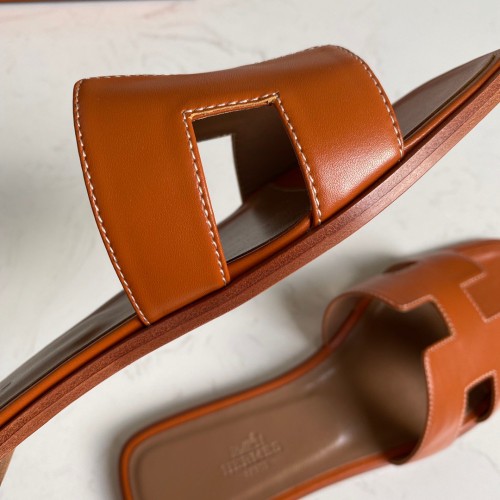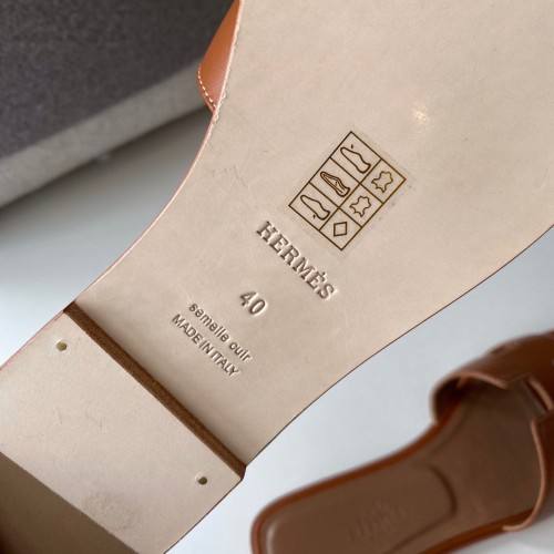 Hermes Oran Slide Sandals In Gold Swift Calfskin