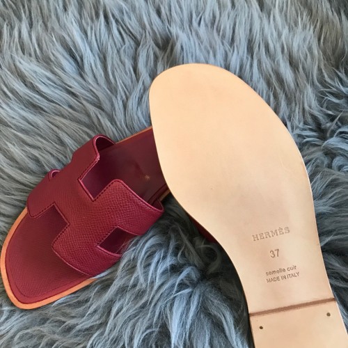 Hermes Oran Slide Sandals In Ruby Epsom Calfskin