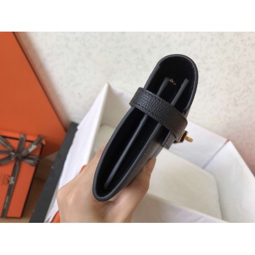 Hermes Kelly Classic Long Wallet In Black Epsom Leather
