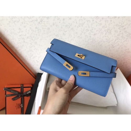 Hermes Kelly Classic Long Wallet In Blue Jean Epsom Leather