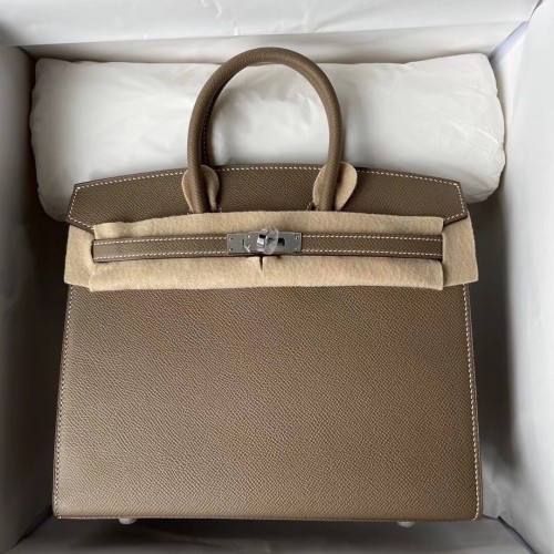 Hermes Birkin 25 Sellier Handmade Bag In Taupe Epsom Calfskin