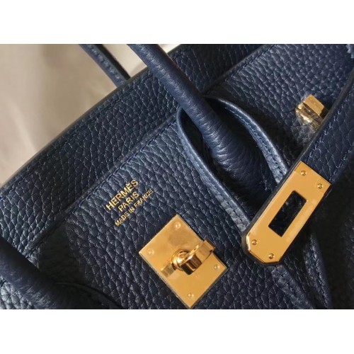 Hermes Birkin 25cm Bag In Navy Blue Clemence Leather GHW